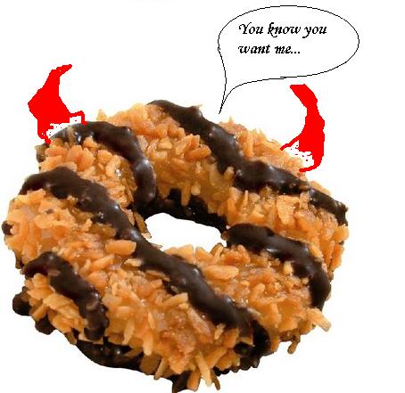 Can we just talk about Girl Scout Cookies for a minute? I’m pretty sure that they’re lovingly hand made by Satan, maximizing both the deliciousness of them and their ability to stick directly to my ass, thighs, and pooch. I’m also pretty sure that Girl Scouts are really just his little demon minions in disguise as cute little girls who get a little teary eyed when you say that your ass can not afford that box of cookies.