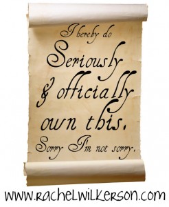 I was so ridiculously inspired by Rachel’s post The Thing About Body Image and the resulting What Do You (Seriously & Officially) Own? . I knew that I wanted to participate but wasn’t sure what to own that I hadn’t already here. I mean, how many more secrets can I have? I kind of shot my wad in my Hi, My Name Is Kendra page and The Back Story Posts. It dawned on me, though, that it wasn’t necessarily what I needed to tell but what I needed to own up to and stop doing because 1) It’s fucking annoying to all of us and 2) because it does absolutely nothing for my self confidence.